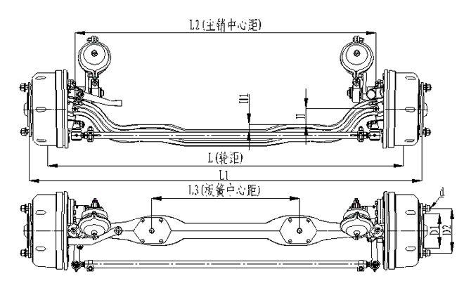 產(chǎn)品特點(diǎn):1.前軸為整體鍛造結(jié)構(gòu),采用加強(qiáng)設(shè)計(jì),承載能力強(qiáng); 2.輪距、板簧距可靈活調(diào)整;3.車輪輪輞定位方式可采用球面定位或止口定位