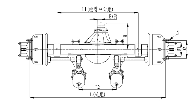 1.橋殼加強(qiáng)型設(shè)計(jì),承載能力強(qiáng);2.輪距、板簧距可靈活調(diào)整;3.采用專用客車制動鼓(帶散熱孔及散熱筋)和摩擦片,具有散熱效果好,使用壽命長的優(yōu)點(diǎn);4.車輪輪輞定位方式可采用球面定位或止口定位